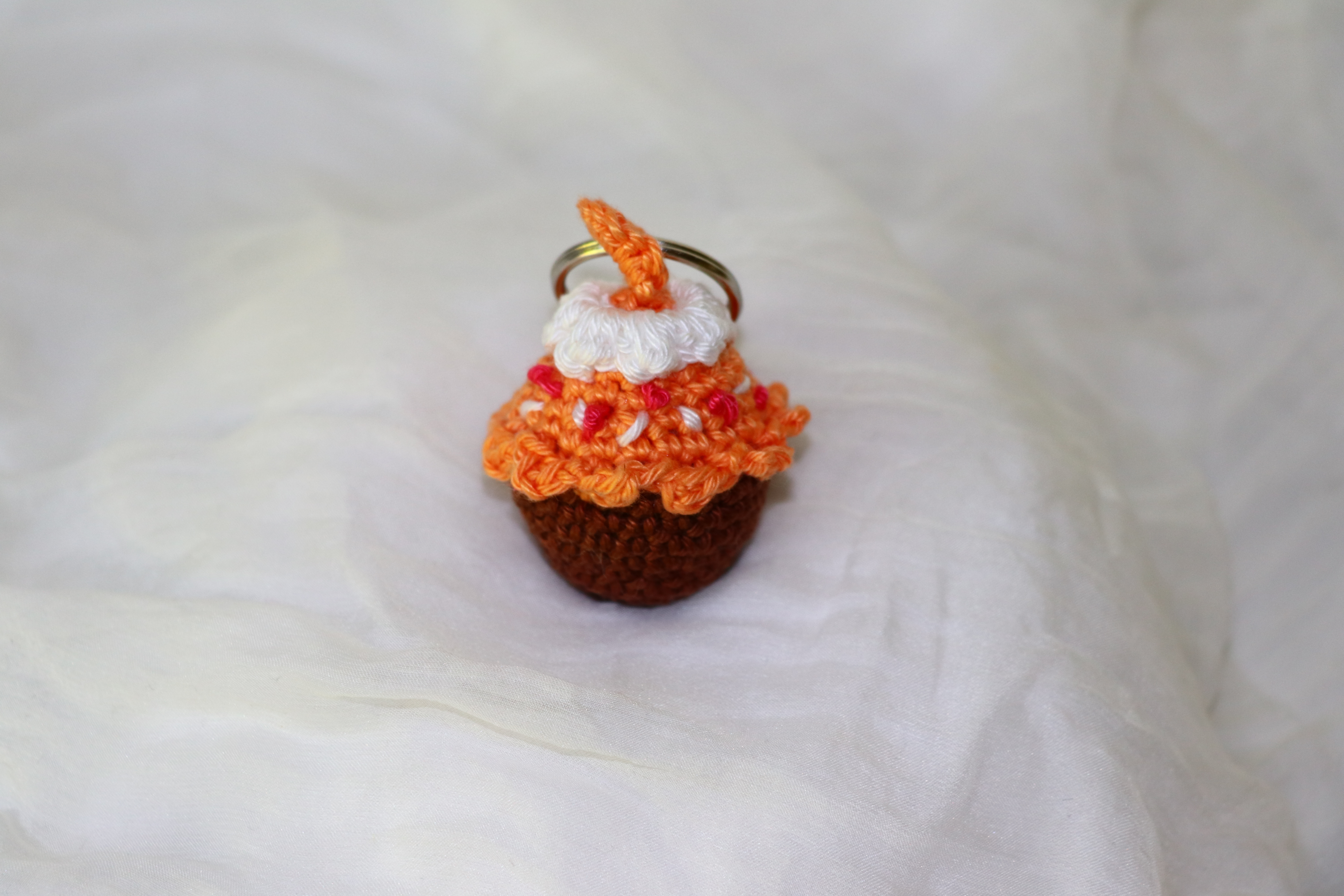 Gehäkelter Schlüsselanhänger aus Baumwollgarn.