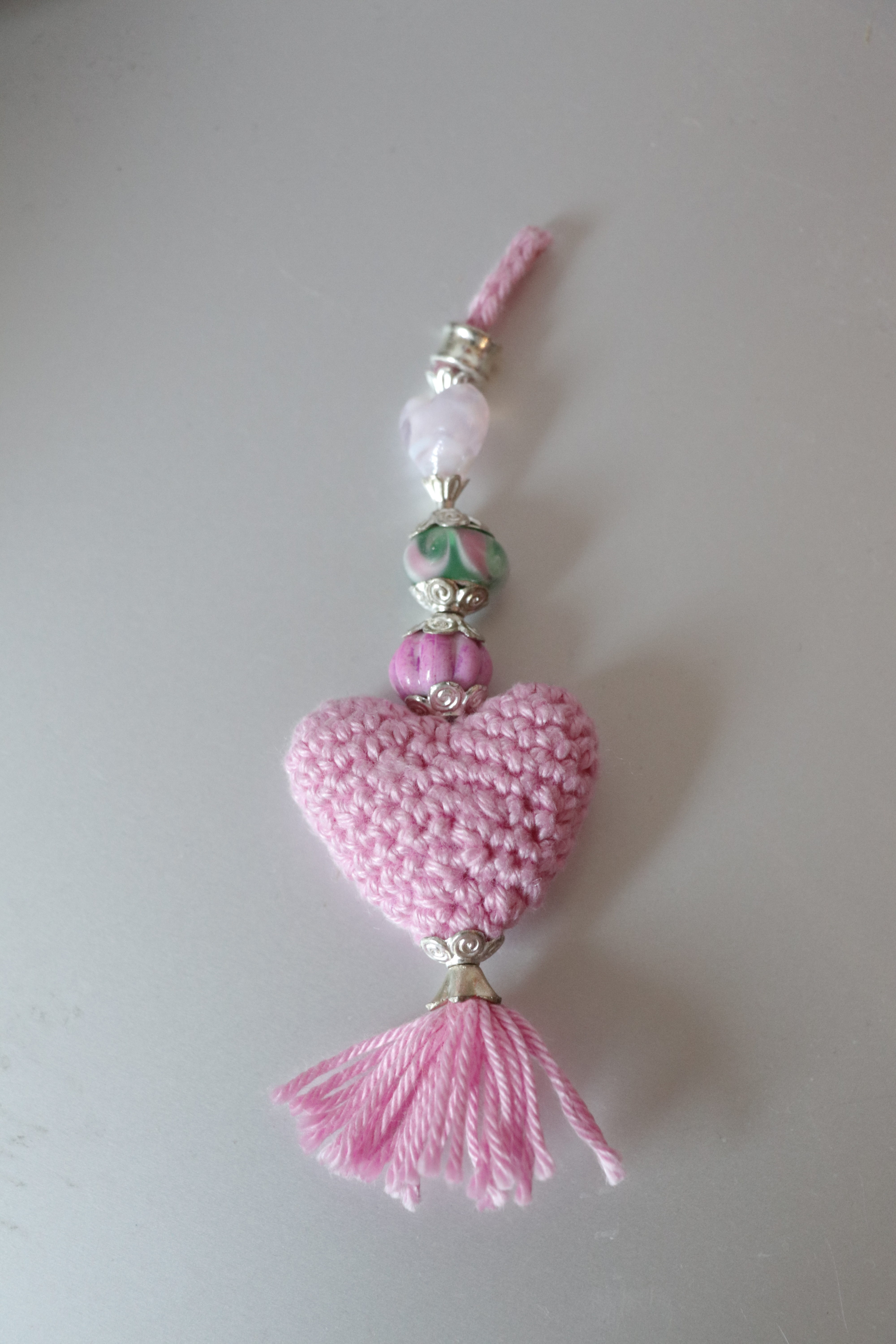 Schlüsselanhänger gehäkelt mit kleinem Herz (Baumwollgarn)