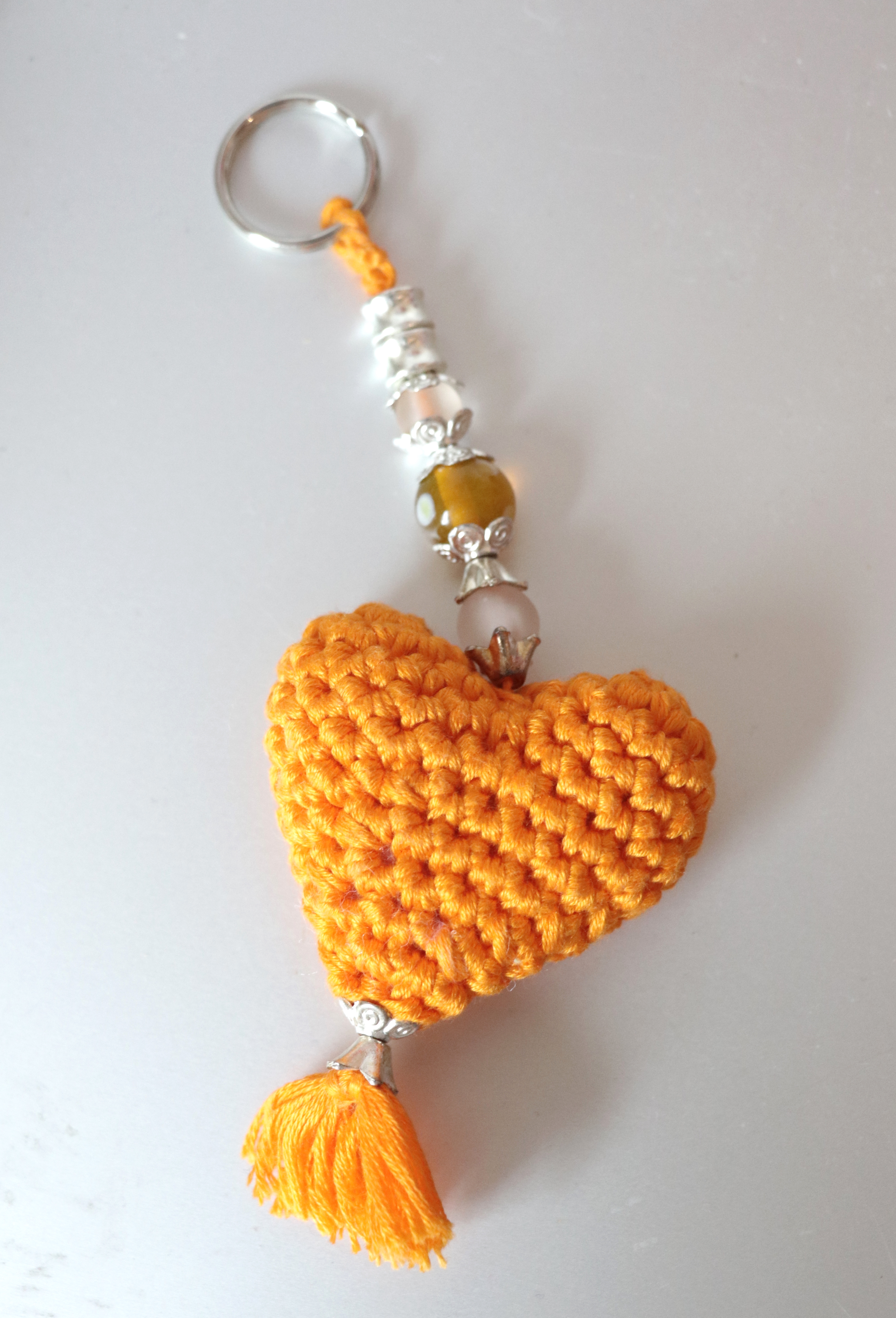 Schlüsselanhänger gehäkelt mit Herz (Baumwollgarn)