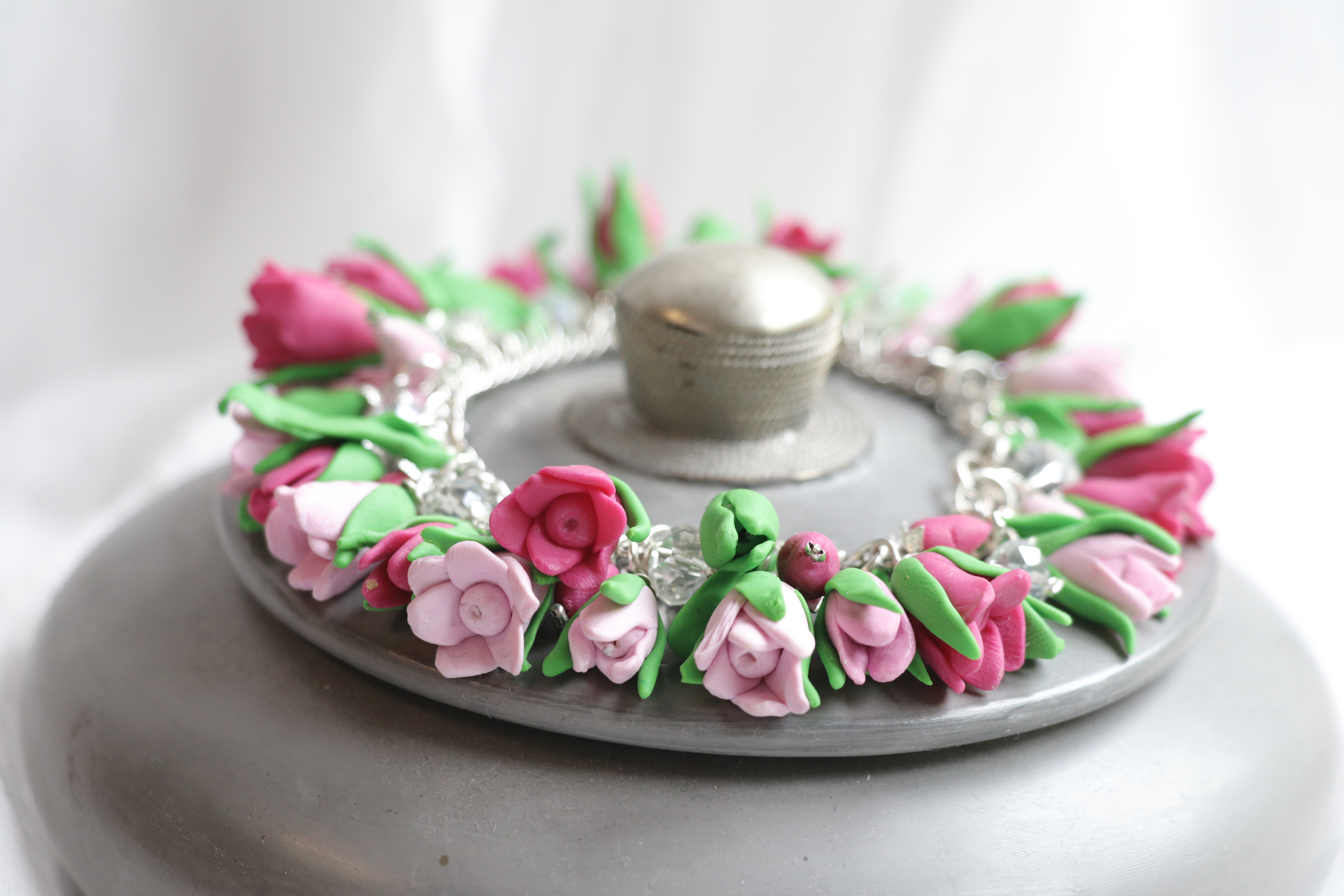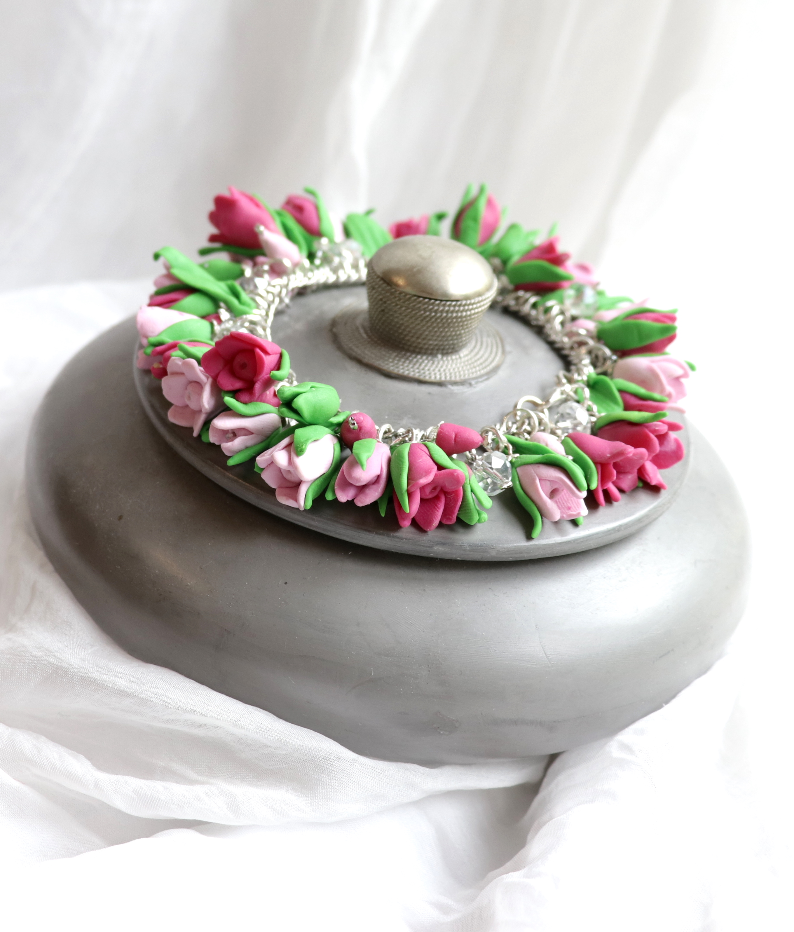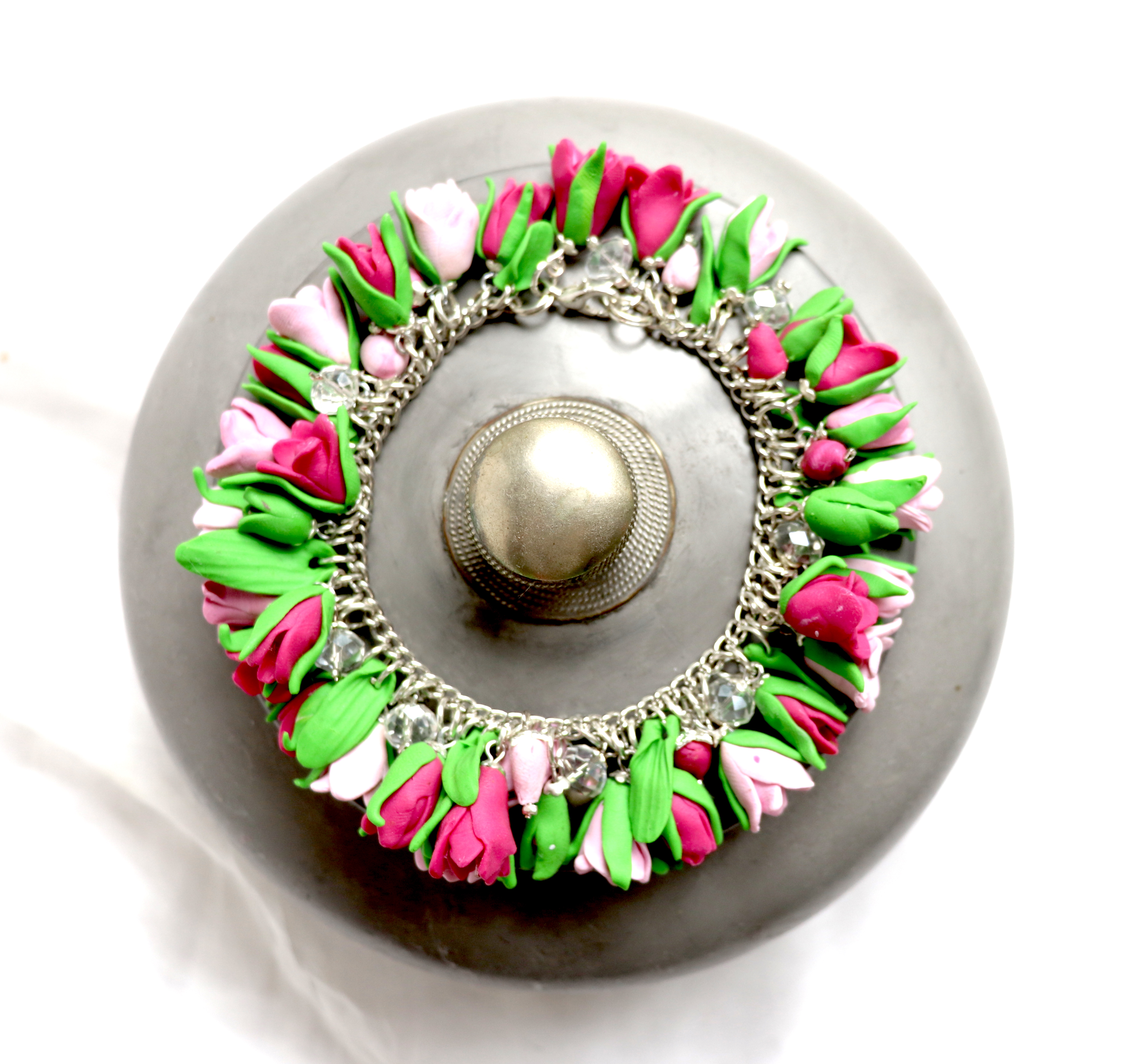 Wunderschönes und aufwändiges erarbeitetes Armband mit Tulpen (Polymer Clay).