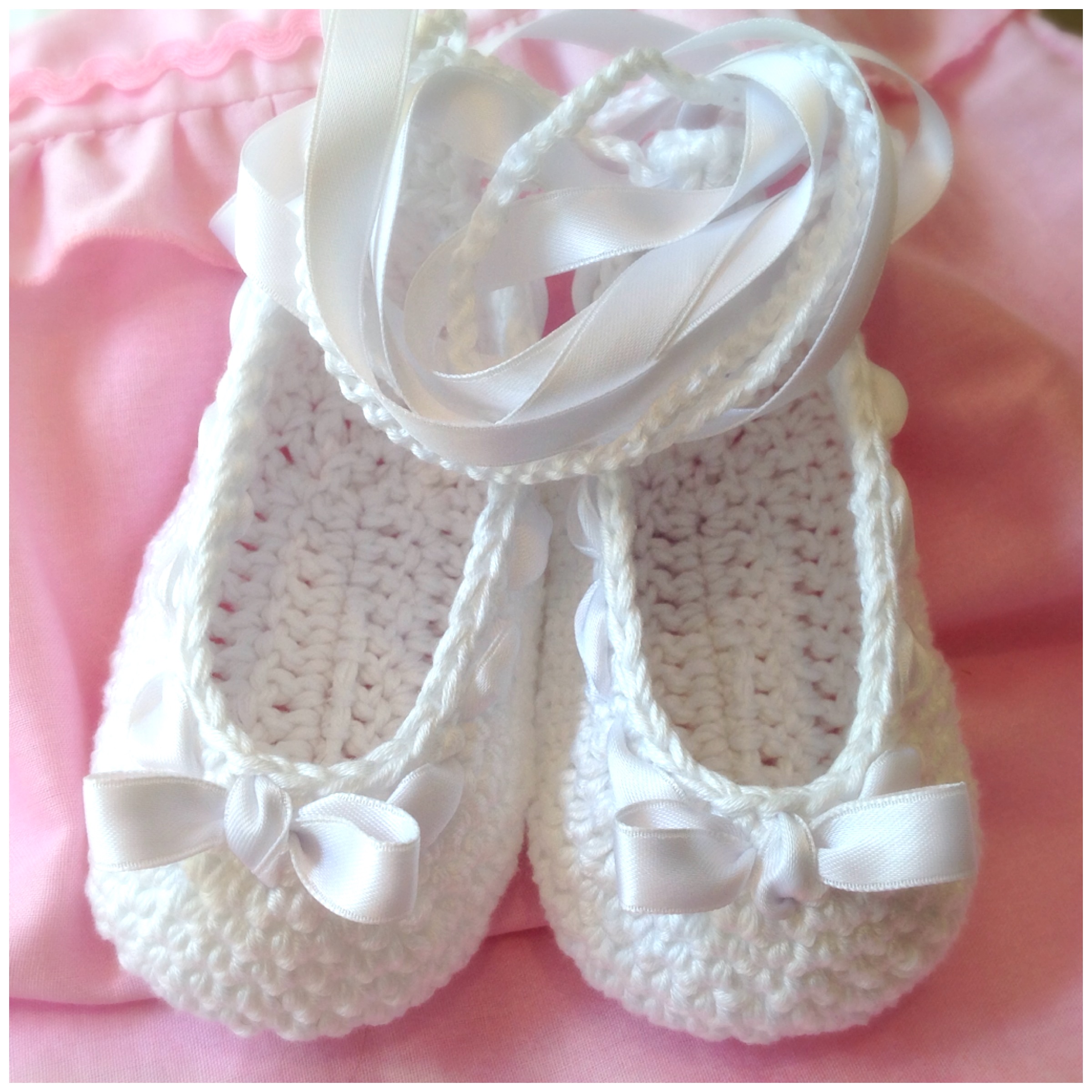 Süsse aus Bauwollgarn gehäkelten Ballerinas.