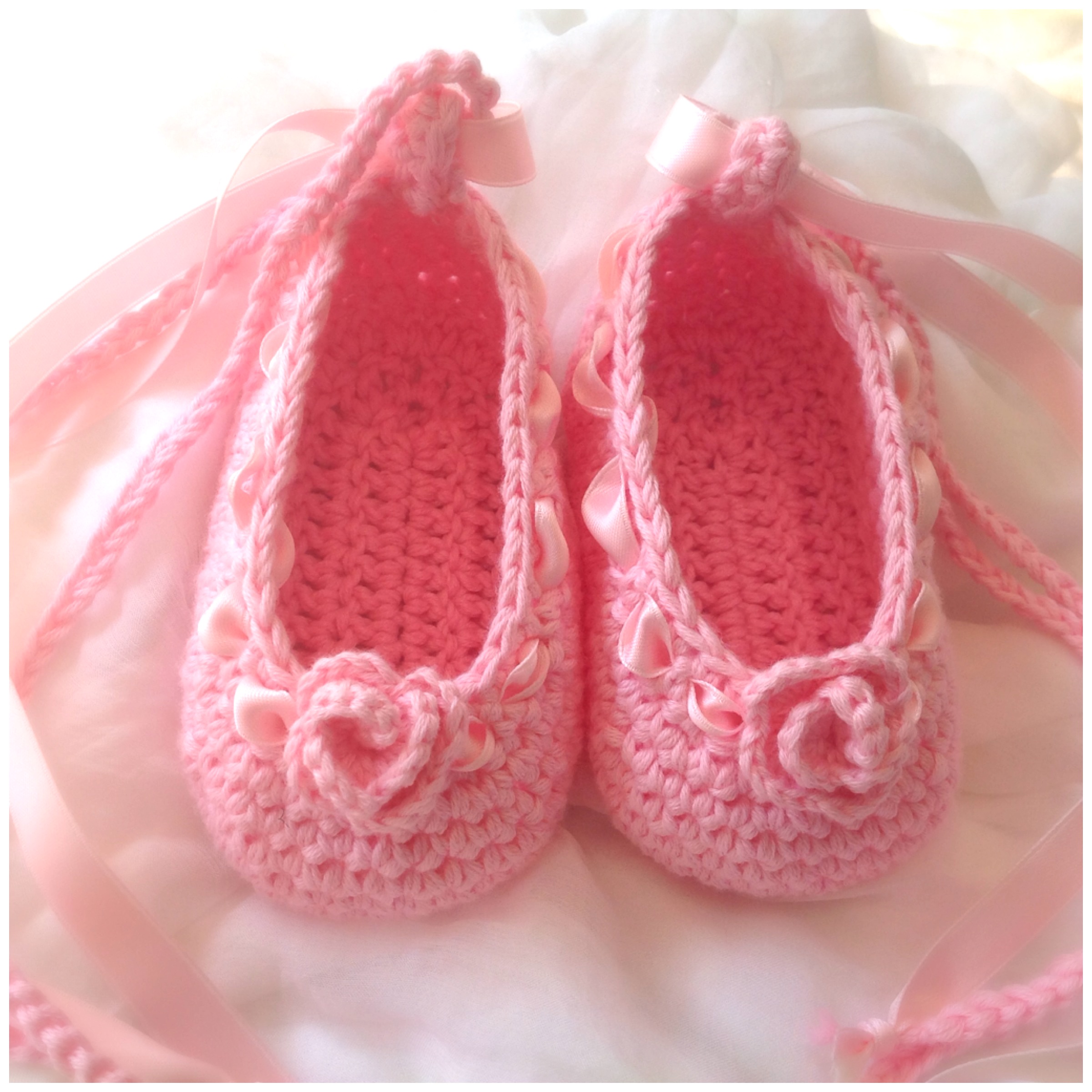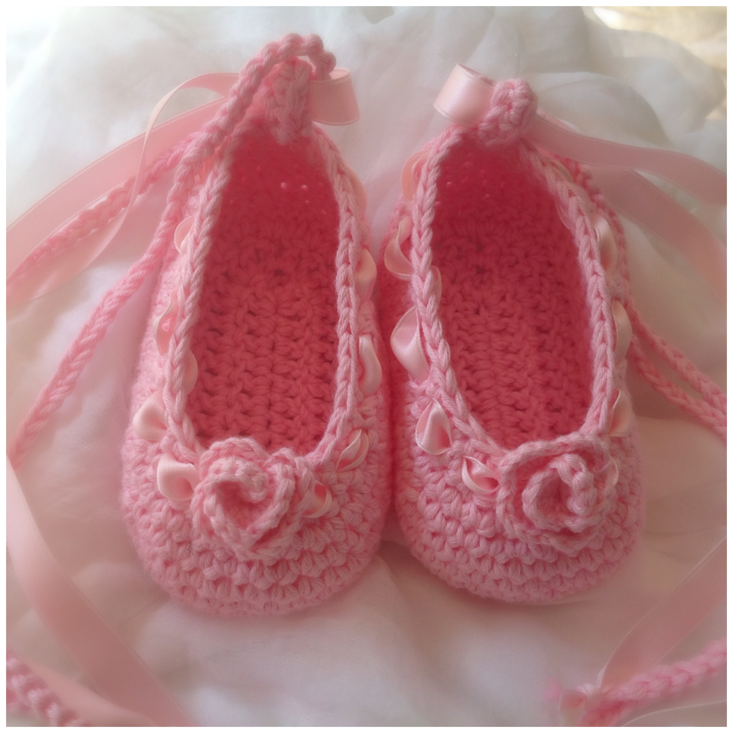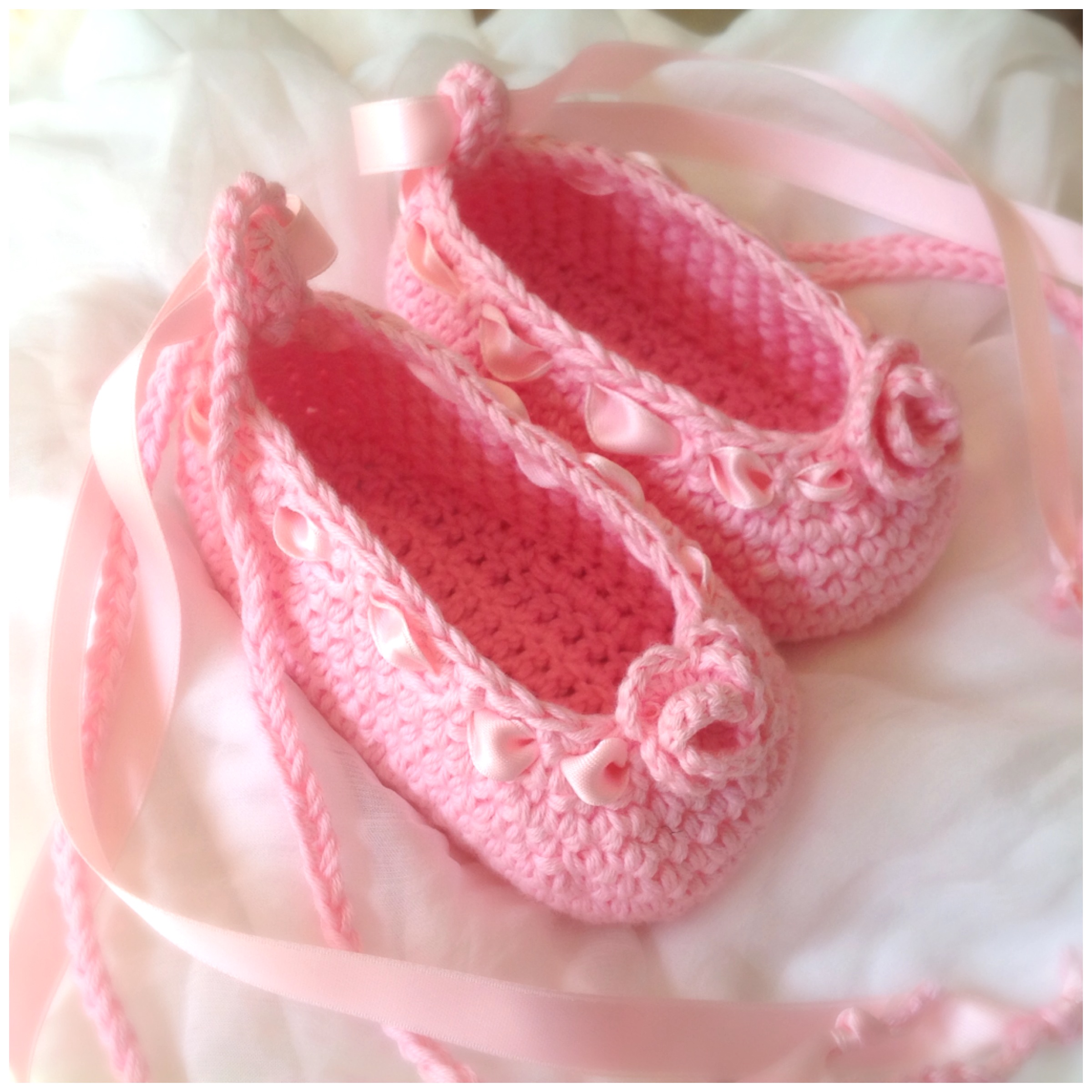 Süsse aus Bauwollgarn gehäkelten Ballerinas.