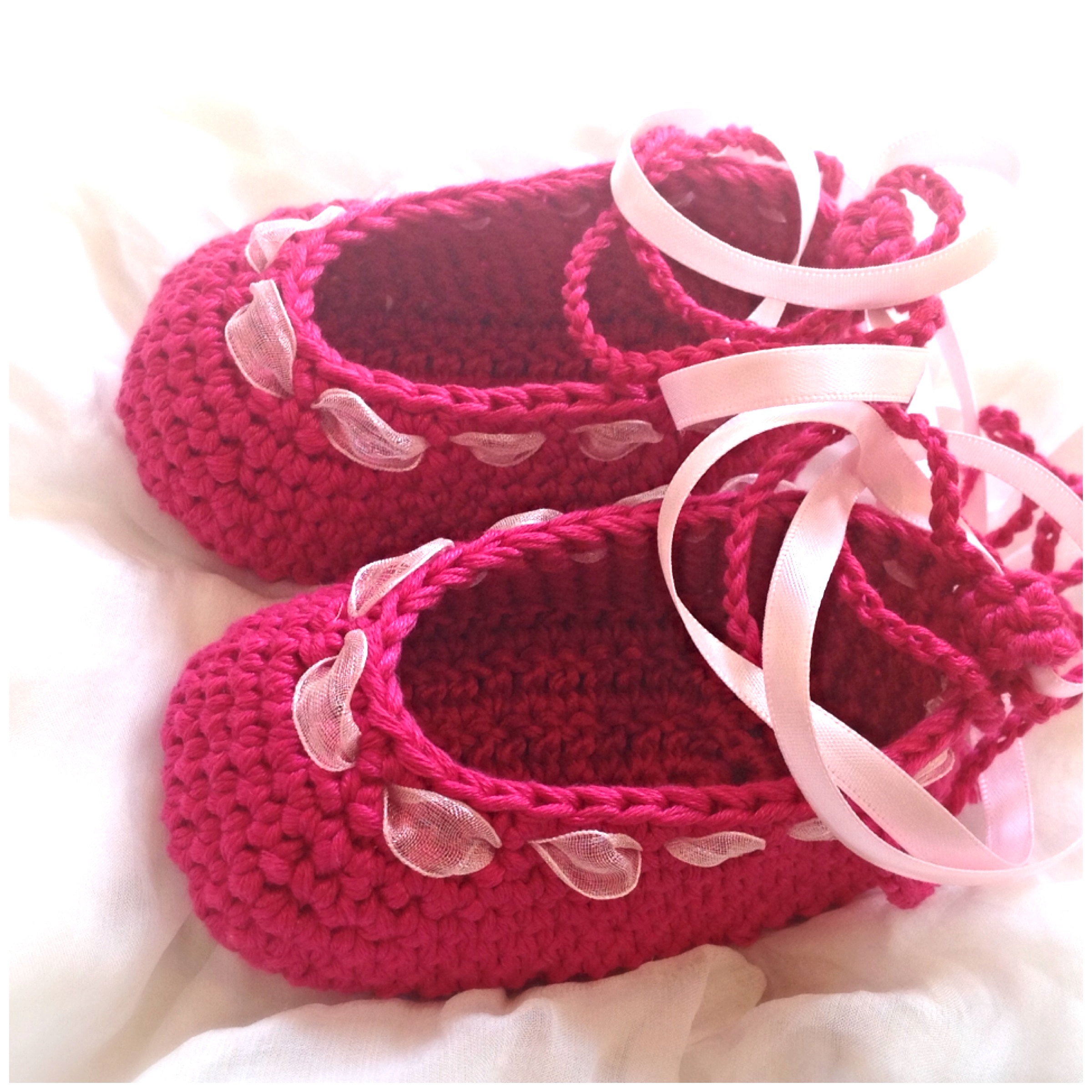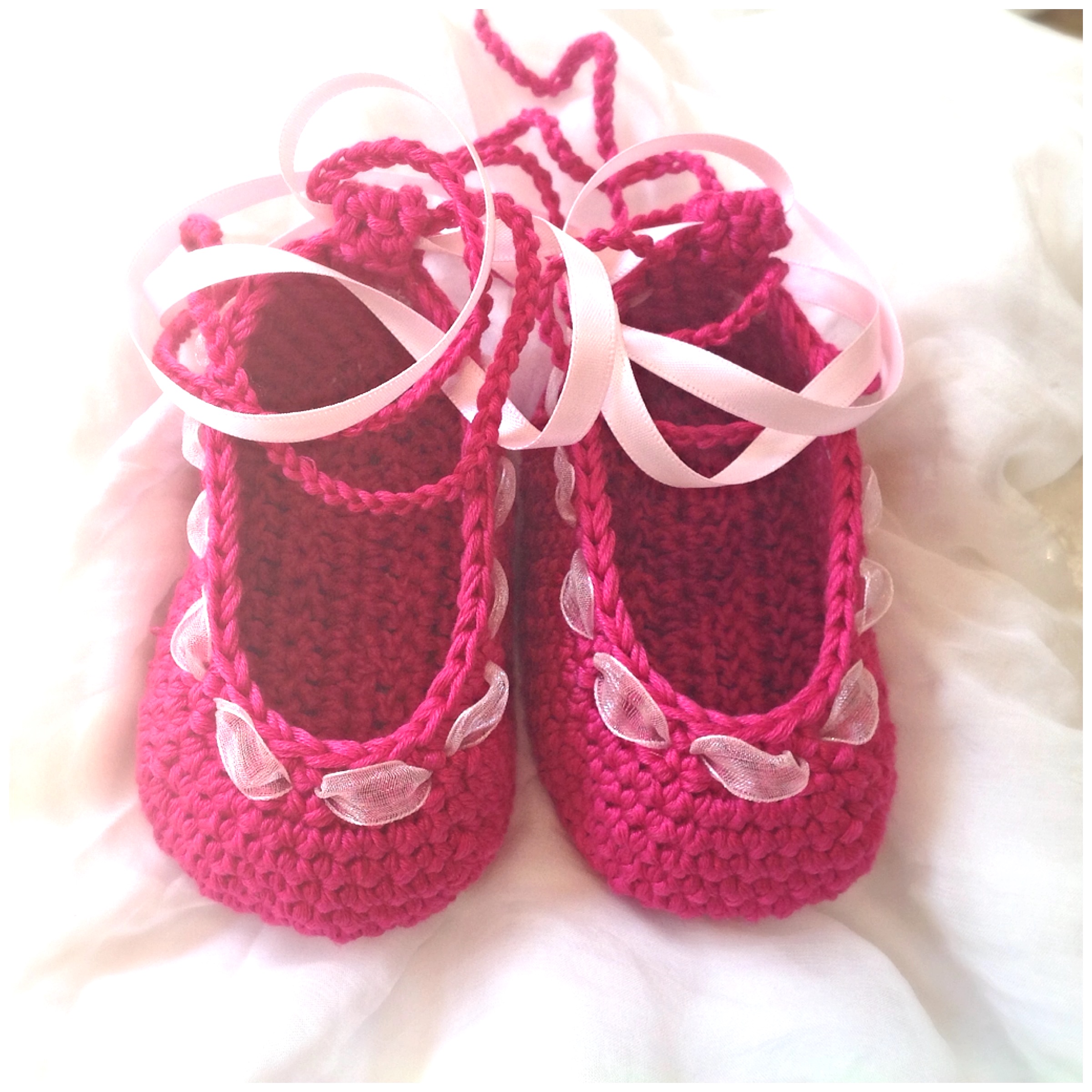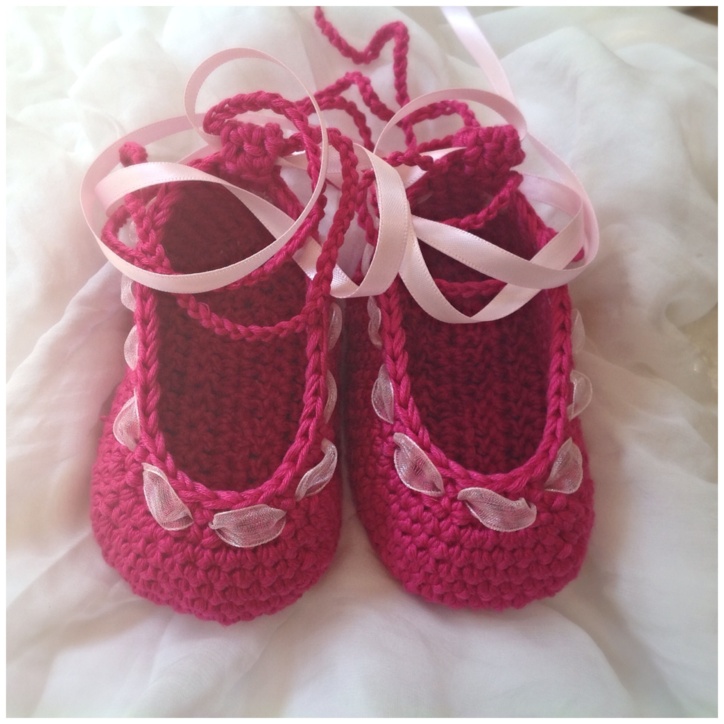 Süsse aus Bauwollgarn gehäkelten Ballerinas.