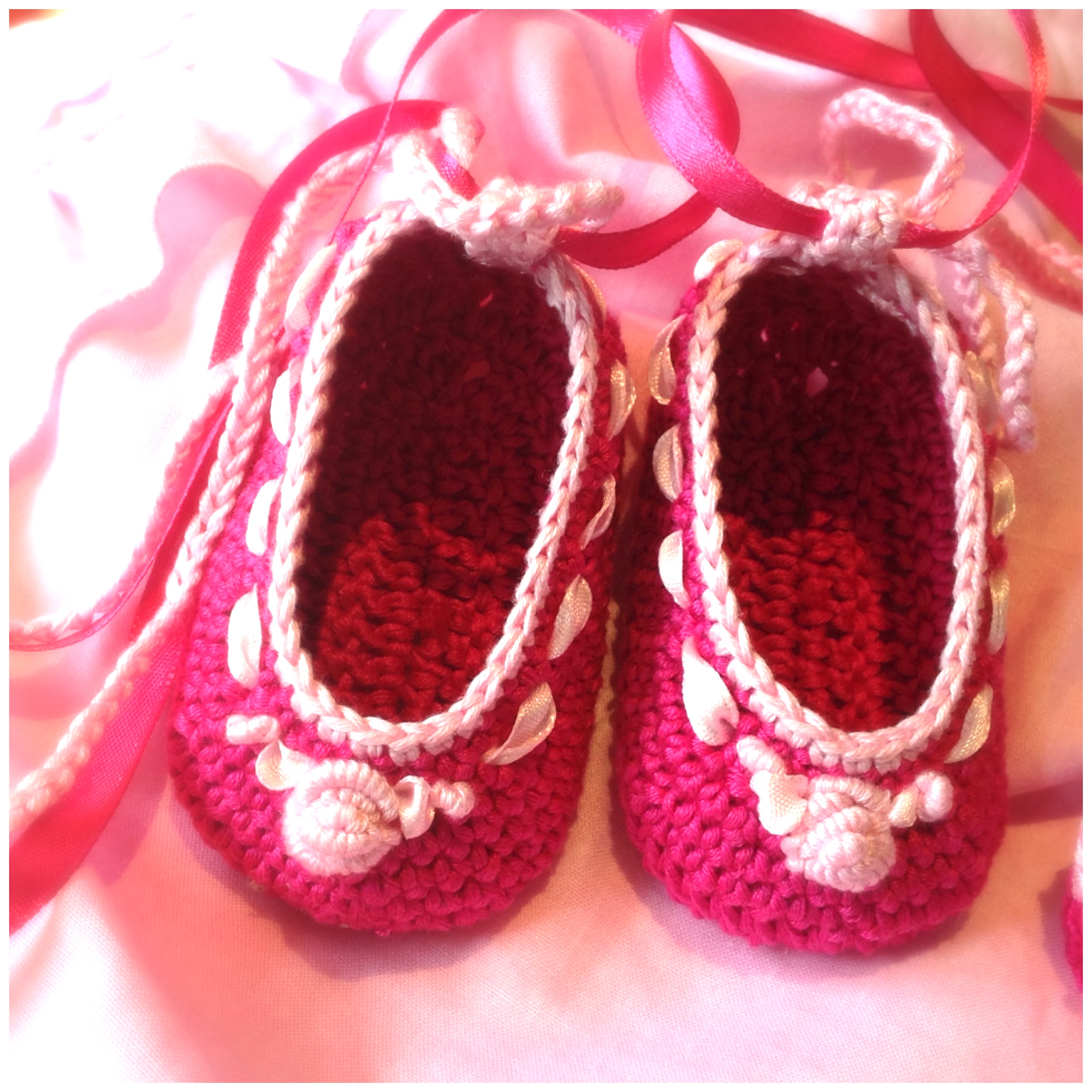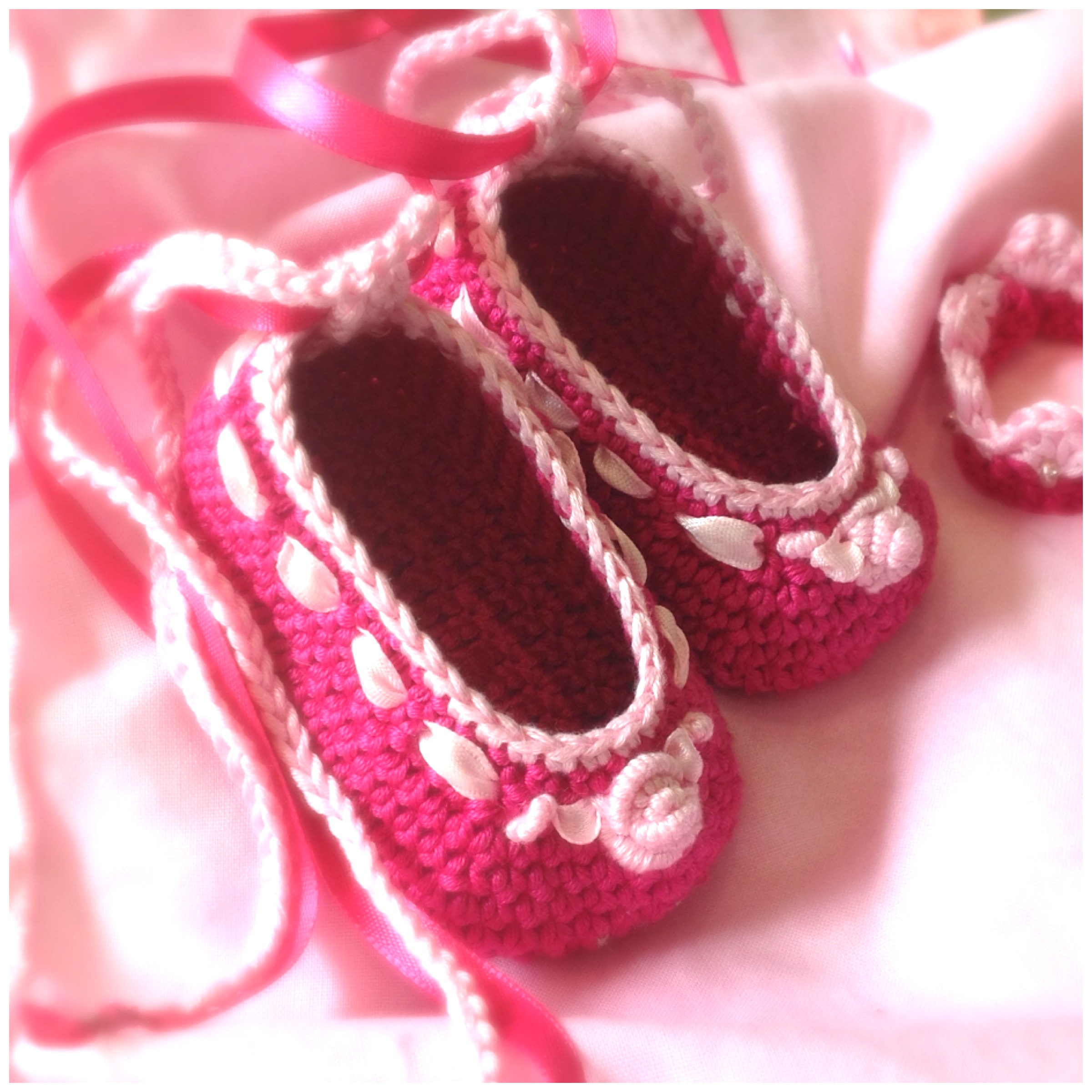 Kleine aus Bauwollgarn gehäkelten Ballerinas.