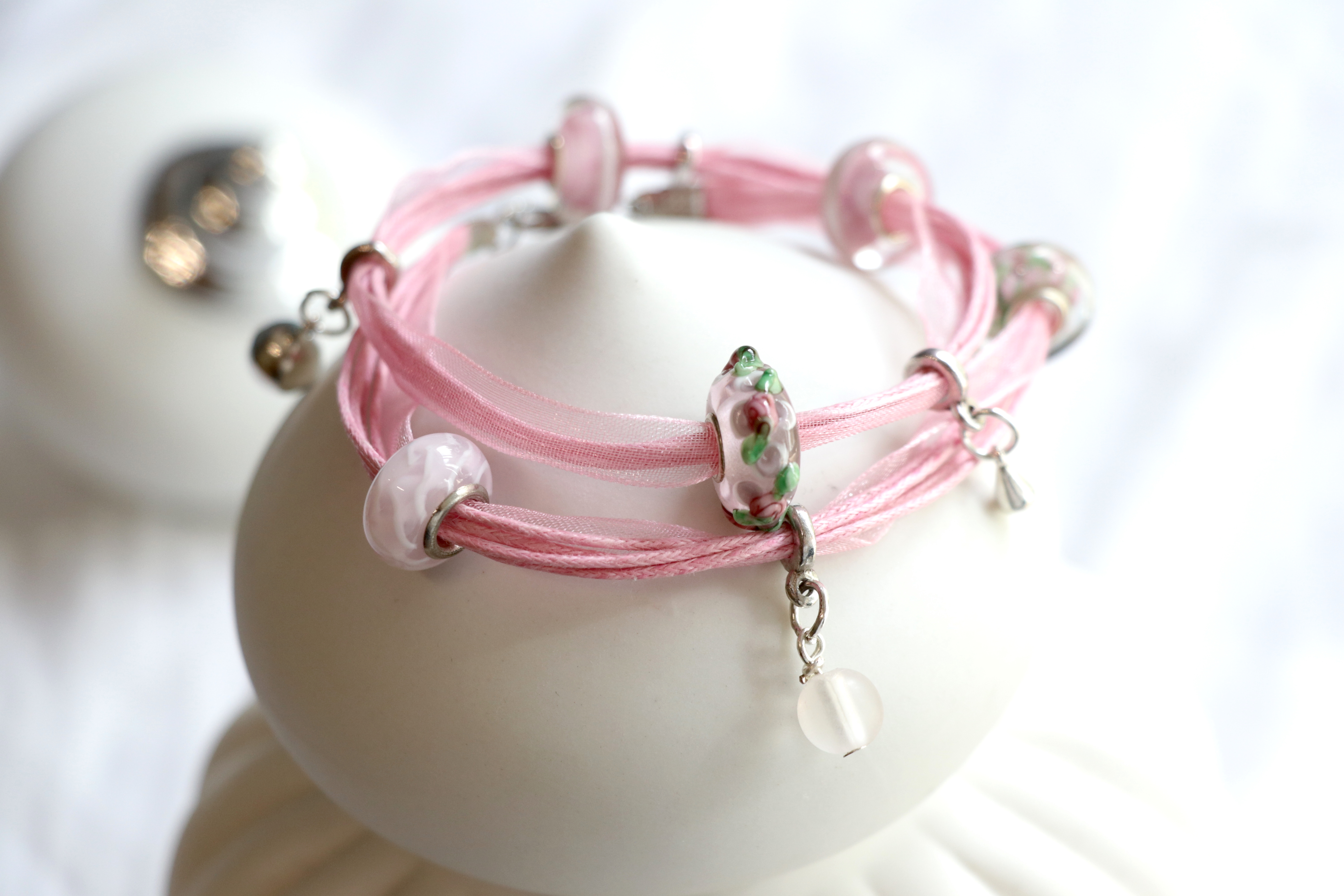 Doppeltes Armband mit aufgezogenen Glasperlen, welche ganz individuell verschoben werden können.