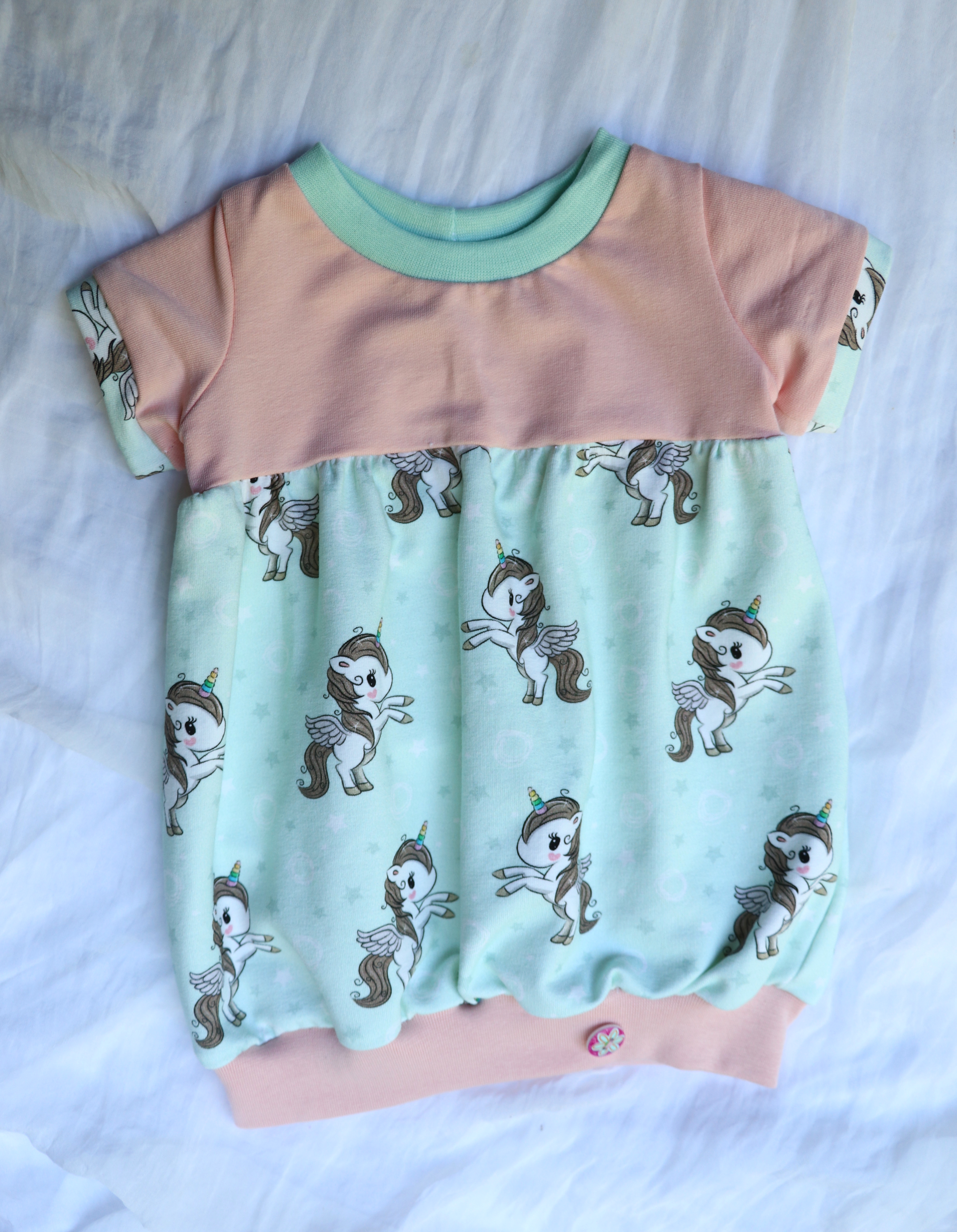 Süsses und dehnbares Ballonkleid mit Einhorn.