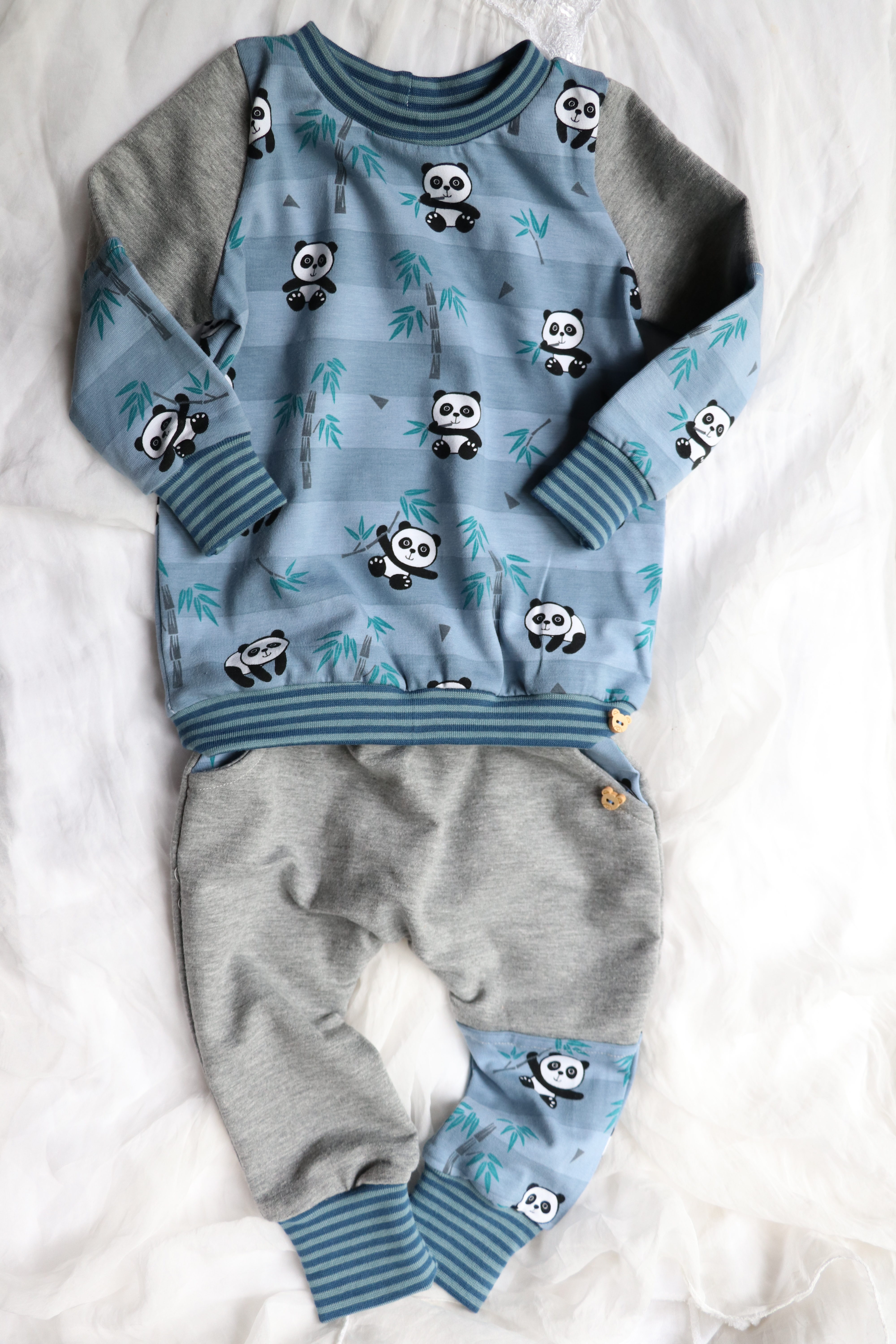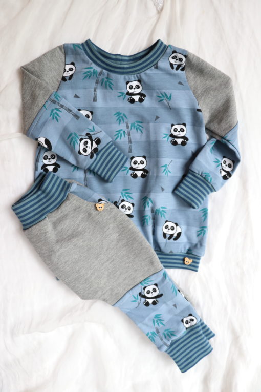Schönes 2-teiliges Set aus Jersey und Sweat mit Pandas. (95% Baumwolle, 5% Elastan)