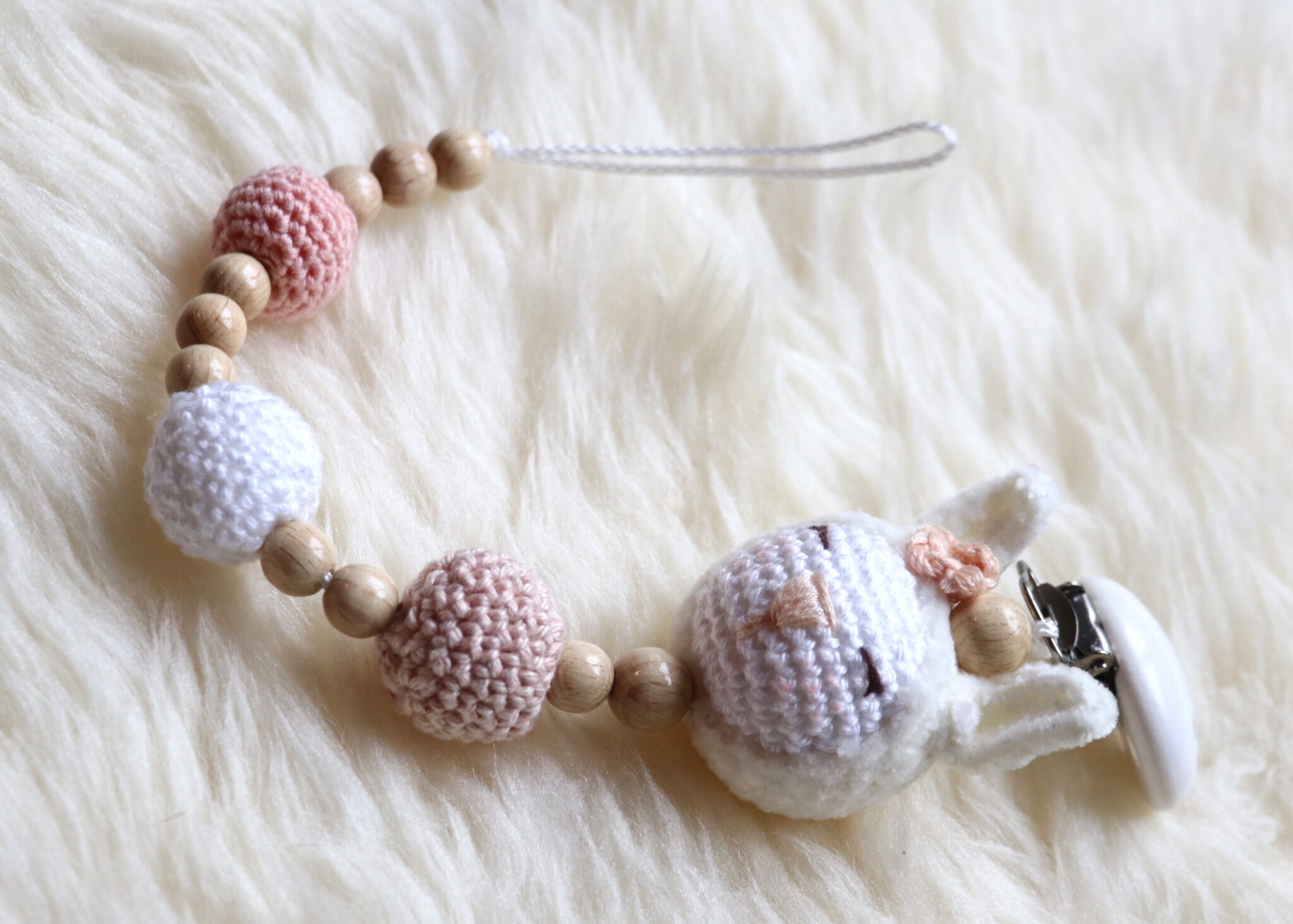 Süsse gehäkelte Nuggikette (Hase)
